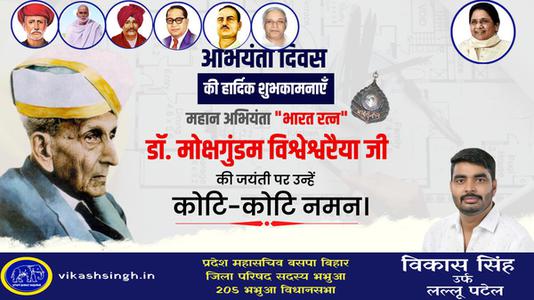 विकास सिंह-इंजिनियर दिवस की आप सभी   देशवासियों को हार्दिक शुभकामनाये  -भारत के सुविख्यात इंजीनियर भ