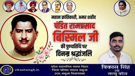 विकास सिंह-राम प्रसाद बिस्मिल जी की   पुण्यतिथि पर विनम्र श्रद्धांजलि